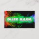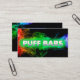 Bar Vape Puff Cartão de visita preto com um design de fumaça vibrante, colorido do arco-íris, e texto brilhante alto com um brilho verde para trás.