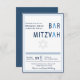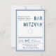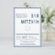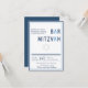 Um convite simples e moderno com linhas azuis limpas e detalhes personalizados, e uma sutil textura azul no verso.