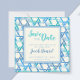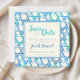 Este cartão moderno, leve e novo de salvamento é perfeito para uma celebração Mitzvah Bar. Ele apresenta um padrão azul teal do símbolo judeu da Estrela de David, e uma fonte no estilo aquarela. Todas as frases de texto podem ser personalizadas.
