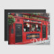Cartão-postal magnético do famoso pub vermelho com as cestas de flores penduradas no distrito de Temple Bar, em Dublin, capital da Irlanda, com o texto: "Dublin".