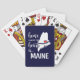 A casa do Maine é onde está o coração - em letras mistas e letras brancas maiúsculas com a silhueta do estado e um coração vermelho