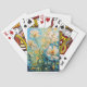 Uma pintura abstrato de flores florescentes. As flores têm pétalas grossas e texturizadas em tons de branco, creme e amarelo pálido, com pistas de azul. Eles têm centros amarelos e laranja. O fundo é uma mistura de blues, verdes, e amarelos, criando um sentimento vibrante e um pouco impressionista. O estilo sugere o uso de facas de paleta para aplicar camadas grossas de tinta, dando à trabalho de arte uma qualidade tátil.