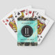 Celebre o aniversário de casamento da turquesa 11 com estas cartas de jogar na moda! As letras esbeltas a preto e branco sobre um mármore amarelo e fundo azul esverdeado acrescentam um toque memorável para esta ocasião especial e marco. Personalize com os nomes do casal e as datas do casamento. Design © W.H. Sim. Mais informações em zazzle.com/expressionsoccasions