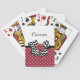 Pegue uma garota com este bonito baralho vermelho e branco de padrão de bolinhas de cartas de jogar com um arco chevron preto e branco e um rosa vermelho-chic. Personalize este retrato vermelho e preto encontra a design moderna, acrescentando o nome da sua adolescente. Imagem impressa plana, NÃO fita e arco de rosetas reais.