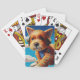 Estas cartas de jogar têm um cão de arte sobre elas.