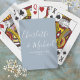 Com nomes de estilo de assinatura, essas cartas de baralho podem ser personalizadas com seus nomes e data especial em letras elegantes em um fundo azul empoeirado. Projetado por Thisisnotme©