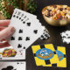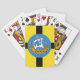 Jogando Cartões com um design com a bandeira de Wellington City, Nova Zelândia. Bandeira amarela com cruz negra e selo da cidade com imagem de um navio no centro