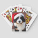 Bela Bernedoodle vestindo um chapéu de Papai Noel.