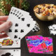 Um design de abstrato de frutas e folhas em cores vibrantes.