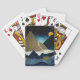 Uma paisagem abstrato com cores e texturas únicas mostrando uma cena de montanha da noite com as luzes brilhantes dos alpinistas e uma lua em tons de azul, ouro, ciano e amarelo.