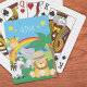 Adicione um tema colorido da selva à coleção de jogos de quarto ou berçário do seu menino ou menina com este adorável conjunto personalizado de cartas de jogo. Cada carta tem uma zebra, girafa, elefante e leão, todos perto de uma palmeira, um arco-íris, e estrelas brilhantes ensolaradas. O nome do seu filho completou o olhar. Este jogo de cartas faz um excelente de aniversário personalizado, Natal ou outro presente de Natal, especialmente para crianças pequenas que amam animais! Também faz um adorável gafanhoto de meia!
