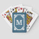 Design monograma com decoração de borda chave grega sobre fundo azul verde
