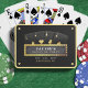 Cartas de baralho temáticas de pôquer preto e dourado com quatro ases e letreiro de marquise. Personalize com os detalhes do evento do noivo.
