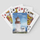 Quer você jogue na sua casa de praia de verão ou pôquer com as caras você vai adorar este baralho de cartas. Cores de água elegantes com paisagem marinha com uma majestosa casa de luz branca e ondas de queda azul. Monograma com seu nome para adicionar um toque pessoal.