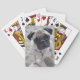 Um cachorro de frente com um rosto preto no joelho do fotógrafo olhando para a câmera.