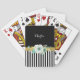 Um moderno baralho preto e branco listrado de cartas de jogar com elegantes flores verdes e brancas de menta em uma faixa de ouro. Personalize este na moda floral design, adicionando seu nome. Imagem plana, NÃO metálica.