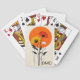Vermelho brilhante, ouro amarelo, e uma flor branca são sobrepostos contra um brilhante sol laranja sobre um fundo brando. Um baralho simples, moderno, minimalista e muito bonito. Personalize com suas iniciais no canto inferior direito.