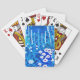 Jogando Cartões em semiabstrato ilustrando uma floresta de fantasia com flores, folhagem, árvores e aves, em tons de azul e branco de cobalto