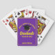 Este baralho de cartas de graduação roxa e amarela apresenta seu segundo grau ou nome de faculdade para a classe de 2025. Personalize com seu nome de formando e ano sob o script manuscrito de tendência e formando o boné para favores personalizados de festa de formatura.