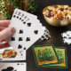 Este na moda de cartas de jogar modernas apresenta quatro garrafas de cerveja verdes vazias dispostas num tapete colorido com um padrão abstrato de faixas vermelhas, amarelas, azuis e brancas colocadas em frente a um plano de fundo de burlap. Quer o seu gosto corra para cerveja, cerveja, gata, giz, pilsner, weissbier, garganta ou trigo, quer você ame cerveja doméstica, doméstica ou importada, eles serão divertidos de possuir!