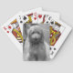 Um filhote de Goldendoodle adorável e peluda sentado em um jardim de concreto caminhando ao longo de uma parede de tijolos em preto e branco.
