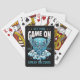 These unique playing cards feature a dark, gothic-style illustration of a skeleton with wings resting on swirling clouds rendered in vibrant blue tones set against a dramatic black background with star accents for a moody aesthetic. Bold typography that says, “Get Your Game On” and “Live by the Cards,” creates an edgy vibe. Two customizable placeholders allow you to add your initials and the current year, making this deck uniquely yours or a thoughtful personalized gift. Perfect for poker nights, card collectors, gothic art lovers, and anyone who embraces dark, trendy design, these playing cards combine attitude, artistry, and personalization into one unforgettable deck.