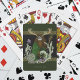 This striking Celtic-inspired artwork features a majestic forest god, Cernunnos or Green Man adorned with antlers and intricate blue face markings. Cloaked in deep green, he holds a wooden staff surrounded by elegant vines, purple flowers, and Celtic knotwork designs. The ornate border frames the image beautifully, creating a timeless piece that celebrates nature, mythology, and ancient Celtic art. Perfect for fantasy lovers, druids, and those who appreciate mystical and pagan themes.