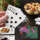 Adorning the back of the cards is a stylized illustration of a hippopotamus head, rendered in purple with white outline details, set against a dark, textured background resembling tree bark or a forest at night. The hippopotamus is surrounded by vibrant red flowers and rich green foliage; these decorative elements suggest the hippo's connection to the ecosystem where it thrives.