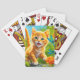 Um gatinho de mesa de laranja giro que franja num jardim floral com libélulas coloridas.