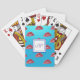 Lábios e cartões de jogar monograma azul em segundo plano.
