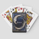 Um belo rosto sereno em uma lua crescente, dentro uma estrutura dourada em um fundo azul escuro gradiente faz um belo baralho de cartas. Faria um maravilhoso recheio de estoque.