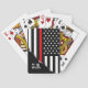 Um grupo de cartões de jogo que caracterizam uma linha vermelha americana bandeira simbólica do estilo finamente do sapador-bombeiro junto com um ponto para as iniciais dos seus receptores do presente.