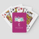 Jogando cartas com um nome personalizado e um monograma inicial em um fundo magenta. Um buquê de flor de aquarela pastel no topo. As flores, folhas e galhos são cor-de-rosa pastel e verdes. Criado com tinta aquosa e digitalizada. Fresco e verão.