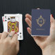 Um design elegante em azul marinho e dourado com a inicial do monograma em uma crista vintage, recomendado como presente para um homem. A crista é em folha de ouro falso, o fundo é azul marinho. Abaixo da crista, em letras maiúsculas pequenas, está o nome em letras maiúsculas douradas.