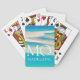 Monograma elegante no seu design pessoal. Oceano ínico, fundo de praia com uma fonte branca.
