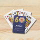For a 60th birthday party. A navy blue uneven colored background. Personalize and add a name and photo, date.