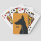 Um design de cartas de jogar minimalista para donos de cães ou amantes, que foi colocado em fundo amarelo. O design introduz uma silhueta de um Doberman preto acompanhado dos obrigados personalizáveis padrão.