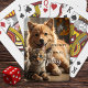 O pinto das cartas com um gato e um cão ansiosos por começar a jogar. Adorável para quem ama animais.