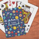 Celebre o sistema solar com este alegre conjunto de cartas de jogar no espaço externo. Cada placa tem um sol feliz, planetas felizes (Mercúrio, Vênus, Terra, Marte, Júpiter, Saturno, Urano e Netuno), assim como Plutão, asteroides e estrelas felizes do planeta anão. Personalize o conjunto de cartas com o nome do seu jovem amante do espaço.