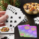 Express yourself with this retro pastel gradient purple, pink and green background colors. Decorated with multi-colored flowers, butterflies and psychedelic shapes pattern. Fun and playful design to enjoy while playing card games with friends and families.