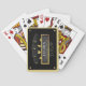 Cartas de jogar de festa de despedida de solteiro temáticas de póquer preto e dourado com quatro ases e letreiro de palco. Personalize com os detalhes do evento do noivo.