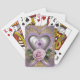 Este é um Pôquer Romântico de Luxo. A design luxuosa foi criada com arte gerativa. A arte apresenta uma imagem romântica luxuosa em quadrinhos com um fundo brilhante em ouro falso. Há um coração prateado com uma flor de lavanda no centro. com uma borda feita de brilho de lavanda. Há uma rosa rosa com folhas verdes. O fundo tem um gradiente de lavanda. Você pode adicionar um nome com o botão Personalizar.