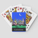 Jogar Cartões em uma vibrante paisagem urbana de Londres é representado sob um céu noturno estrelado, com marcos icônicos como Big Ben silenciado contra o azul. Uma lua crescente pendura acima do horizonte, enquanto uma ponte cruza o rio.