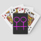 Este incrível baralho de jogo foi projetado para lésbicas. Ele apresenta dois símbolos femininos cor-de-rosa, lado a lado. O fundo é preto.