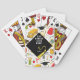 Cartas de jogo criativas para festa de formatura com design de boné preto e linha engraçada em fundo temático escolar. Para personalizar, edite o texto para adicionar o nome do formando da turma de formandos.