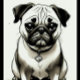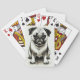 Ilustração em aquarela de um filhote de cachorro sentado em frente a cartas de jogar, as cartas são o Rei dos Diamantes, Jack de Clubs, Rainha de Corações, e o Rei de Espadas, o cachorro está vestindo uma coleira com uma etiqueta em forma de coração, o estilo lembra ilustrações de livros infantis, com iluminação suave e difusa e um esquema de cores monocromático.