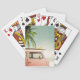 Este design de retrô tropical apresenta uma van com uma prancha no telhado com a praia ao fundo. #surf #retro #surfer #sport #Beach #tropical #relaxe #surfing #legal #trendent #style #fashion #escolar #office #work #home #PlayingCards #games #poker