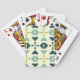 Vintage geometric pattern in shades of blue, lime green, and petrol yellow.