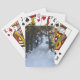 Fotografia de um trilho de neve se enrolando sobre uma ponte em uma floresta.
