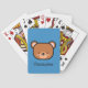 Caro de ursinho castanho-branco, com bochechas cor-de-rosa e vermelhas, orelhas cor-de-rosa e rosto feliz, sobre fundo azul. Um modelo abaixo para adicionar seu nome a personalizar.